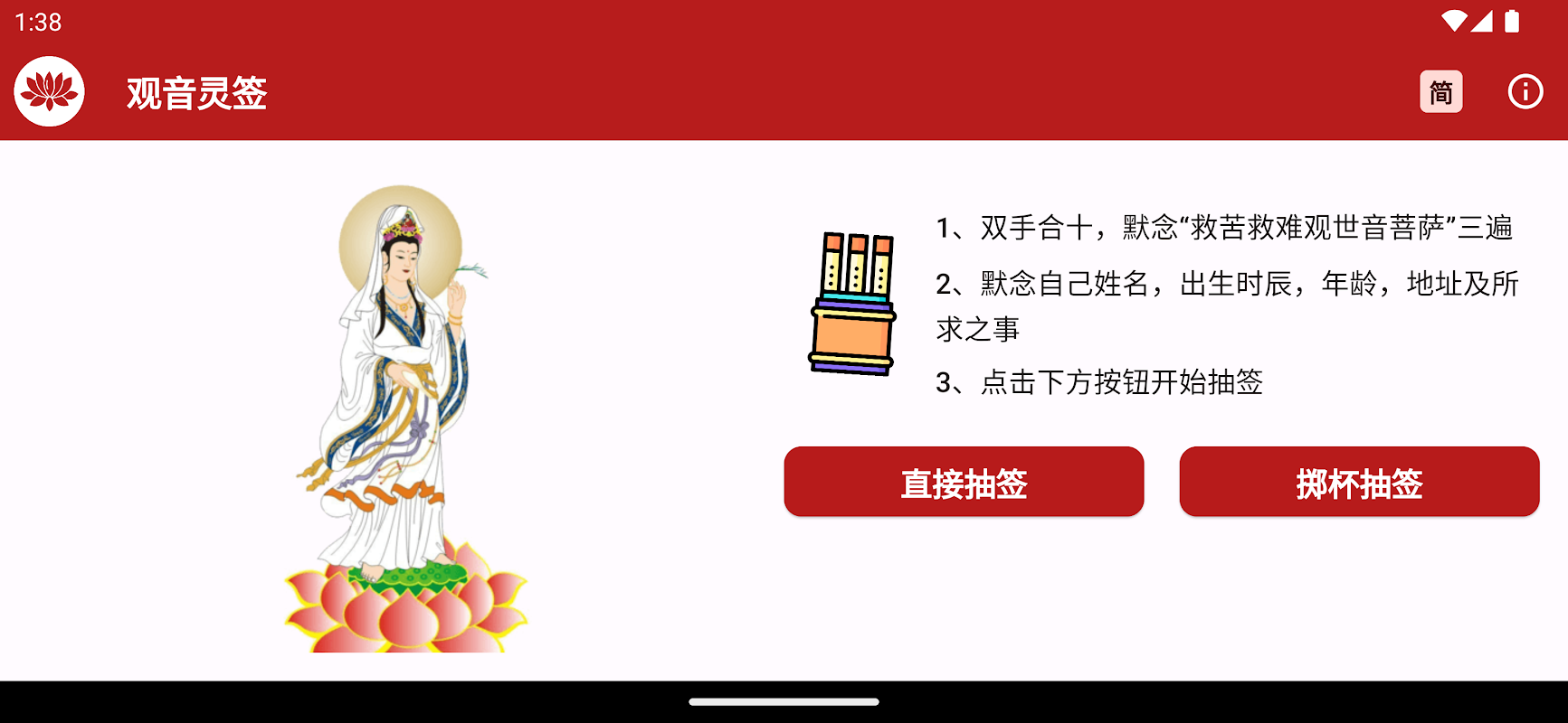 Informazioni sull'APK 观音灵签:直接抽签,掷杯抽签,吉凶解签,圣意典故,繁简切换