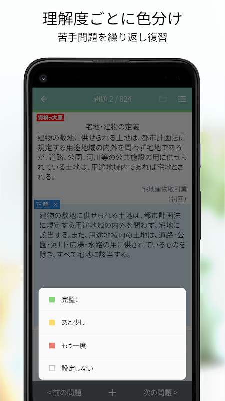 ・Con la funzione del livello di comprensione, puoi raggruppare le domande per colore. Restringi facilmente i problemi in cui sei debole