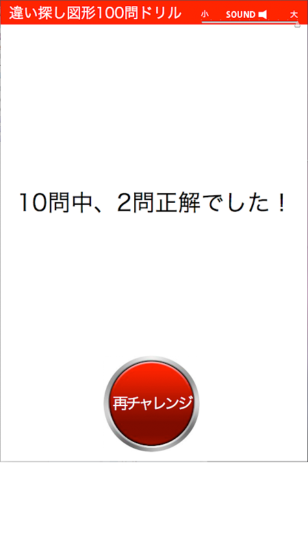 ★ 脳トレ「違い探し図形問題」が100問あります。 ★ 100問からランダムで、10問選ばれて出題されます。 ★ 採点機能付き(参考表示:10問中3問正解)。