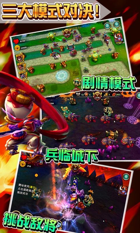 1.创新多模式多玩法:经典剧情塔防+兵临城下+单挑敌将,百玩不厌,考验你的智慧,更让你过足手瘾!