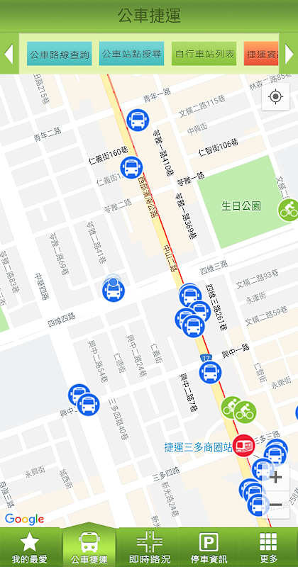 8. 我的最愛功能(可加入常用即時影像、公車站點、捷運站點、公共自行車站點)