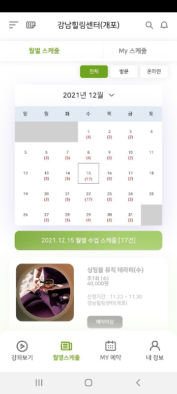 I servizi di registrazione, prenotazione e pagamento del corso del programma Gangnam Healing Center (COEX, Gaepo) sono forniti in modo semplice e rapido.