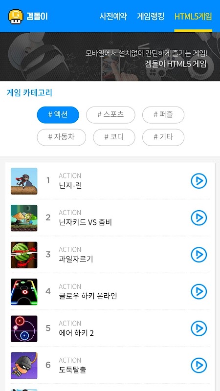 겜돌이 - 게임 사전예약정보, 게임랭킹정보, HTML5게임