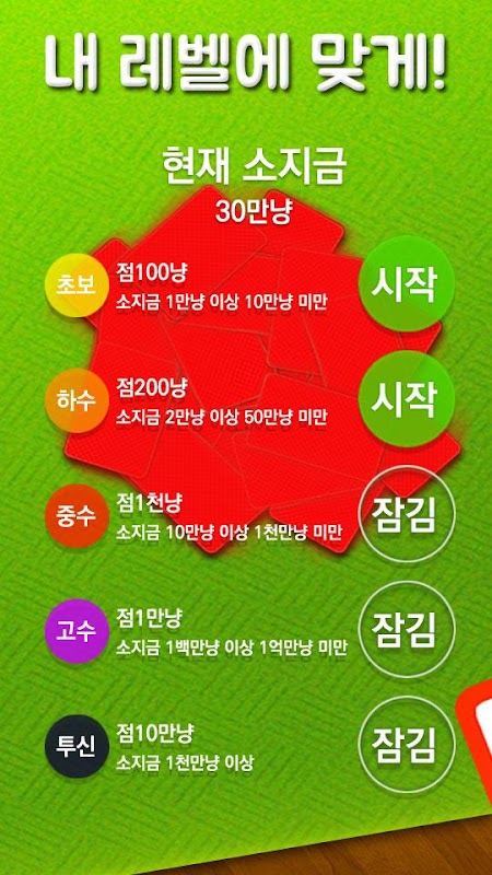 고스톱S는 나의 실력과 레벨에 꼭 맞는 최적의 재미를 제공합니다.
