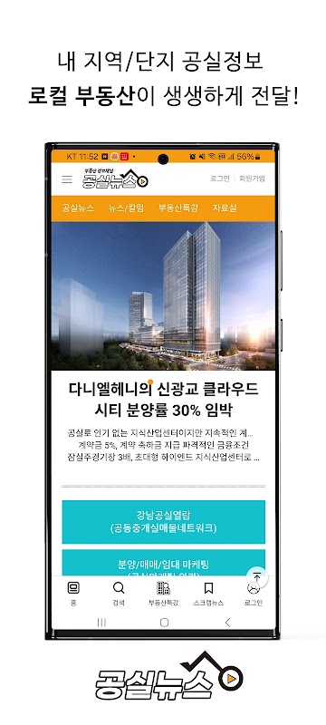 Questa è un'applicazione per smartphone Android con notizie sui posti vacanti per 110.000 immobili e proprietari in Corea.