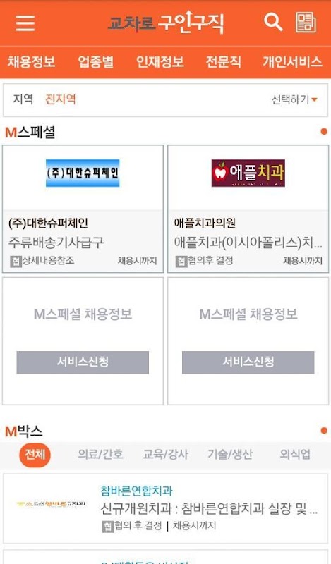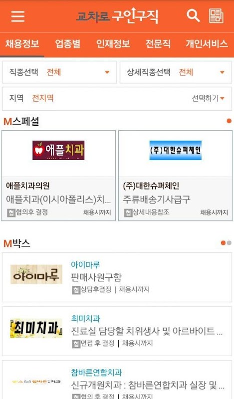 취업주간지인 '교차로 구인구직'의 모바일 버전