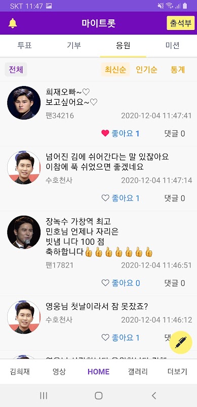 Goditi il trotto. L'ultima canzone di Kim Hee-jae viene aggiornata ogni giorno, puoi votare il tuo cantante preferito, registrare il tuo post di supporto e donare raccogliendo punti.