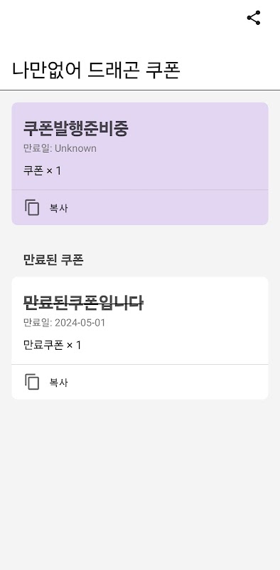 Vecchie versioni di 나만없어 드래곤 쿠폰