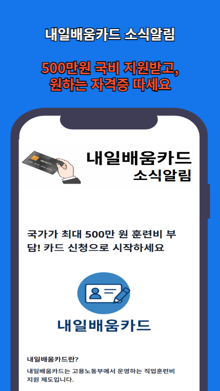 Get up to 5 million won in government funding with the Tomorrow Learning Card! Start preparing for employment and certification now.