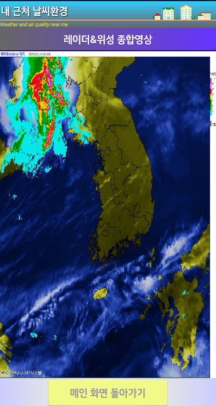 -Sul lato sinistro, vengono mostrate un'immagine composita radar e satellitare e un'immagine di distribuzione spaziale della polvere ultra-fine, e quando viene toccata viene ingrandita su tutto lo schermo.