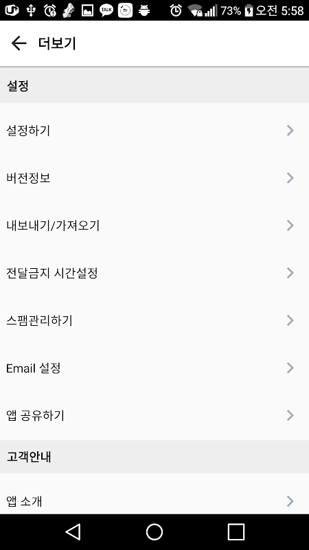 5. email로 전달하기 위해서는 더보기-email 설정에서 전달 email을 설정 하고 수신 테스트를 해야 합니다.
