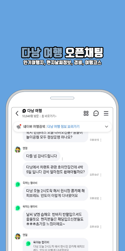 This is an app that shares travel information in Da Nang, Vietnam through open chat and a shortcut to Naver Open Talk.
