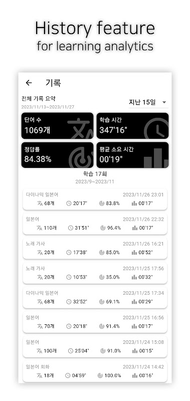 Gestione sistematica: l'app salva quanto capisci per ogni parola per aiutarti a imparare in modo sistematico ed efficace.