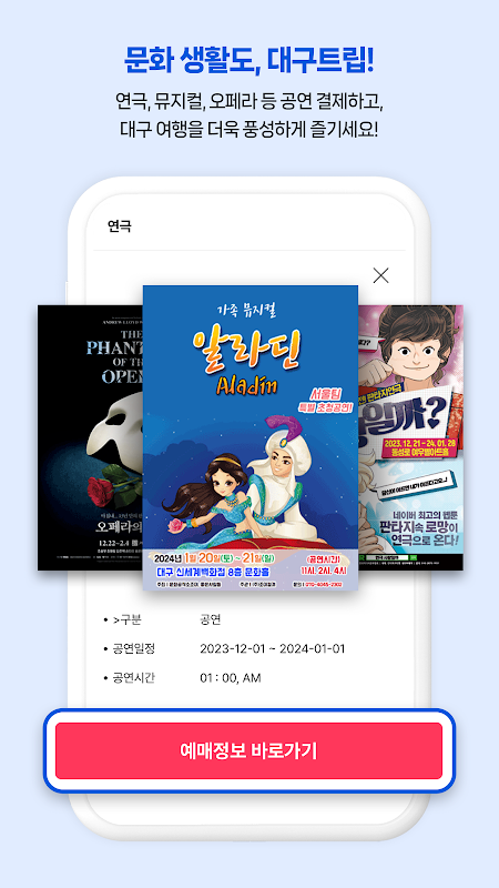 Paga per spettacoli come spettacoli teatrali, musical, opere, ecc. e goditi ancora di più il tuo viaggio a Daegu!
