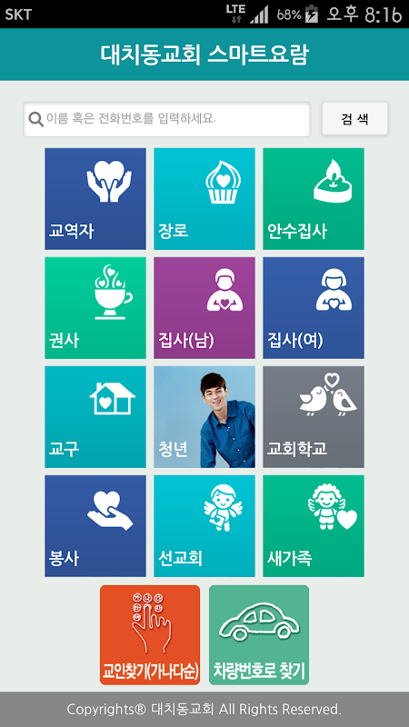 교역자, 장로, 권사, 집사 및 구역장(목자), 교사 등 모든 성도들의 요람을 스마트폰에서 확인하실 수 있는 스마트폰용 어플리케이션입니다.
