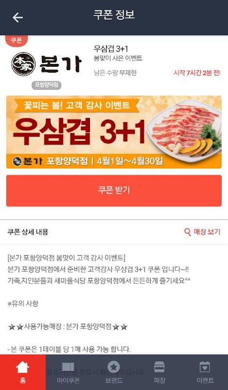 -브랜드쿠폰: 특정 브랜드에서 발급된 쿠폰만 골라서 확인할 수 있는 메뉴입니다.