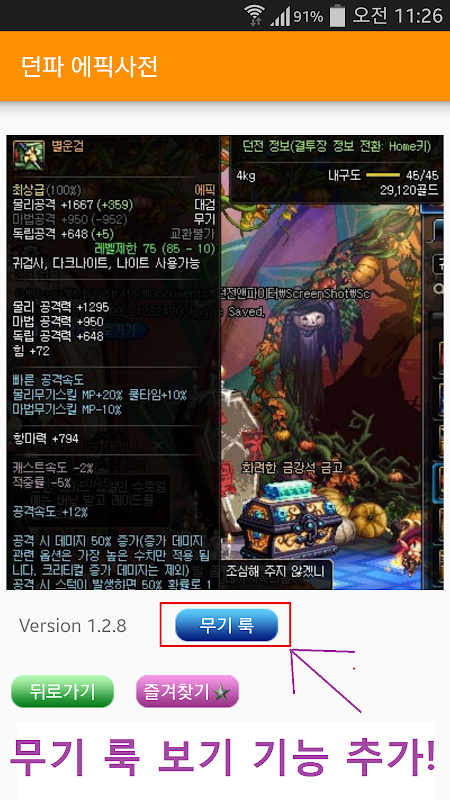 무기룩을 볼 수 있는 기능을 추가하였습니다.