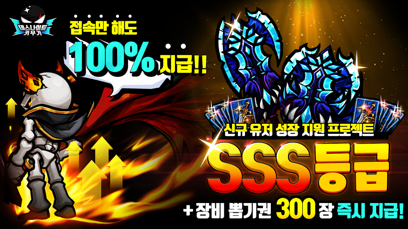 - Equipaggiamento di livello SSS che viene pagato solo effettuando l'accesso, 300 estrazioni gratuite e nuovi buff utente