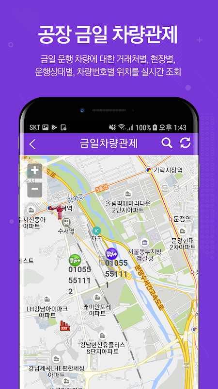 Si tratta di un servizio che supporta il facile funzionamento di posizione, condizioni operative, distanza operativa, tempo di funzionamento, traiettoria e stato di trasporto di un'automobile dotata di terminale GPS come servizio di controllo del veicolo basato sulla posizione.