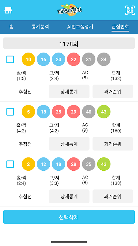 2. AI번호생성기 예상수 필터적용