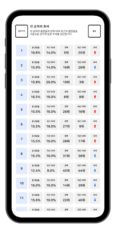 * 로또는 매회 독립확률이기 때문에 예측하는 것은 불가능합니다. 단지, 이 앱은 이미 정해진 데이터를 용도에 맞게 정리하여 살펴보는데에 도움을 줄 수 있습니다.