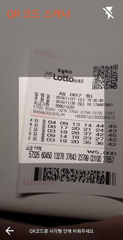 로또 당첨확인 - QR코드 1.37.07