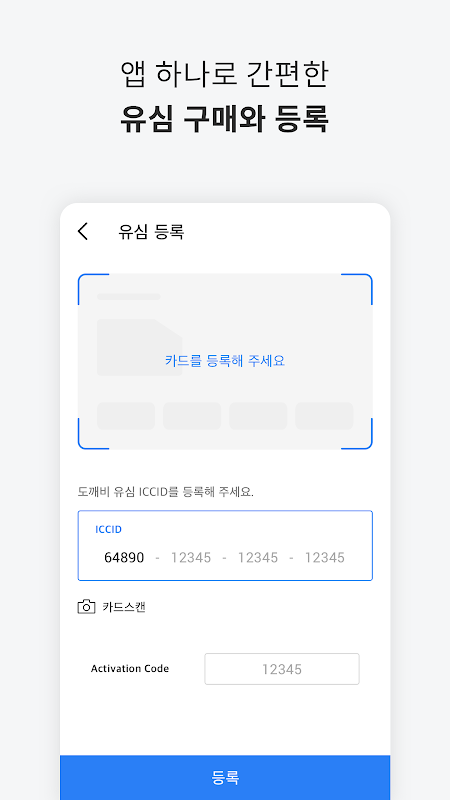 - 카메라 : 유심 등록을 위한 바코드 인식