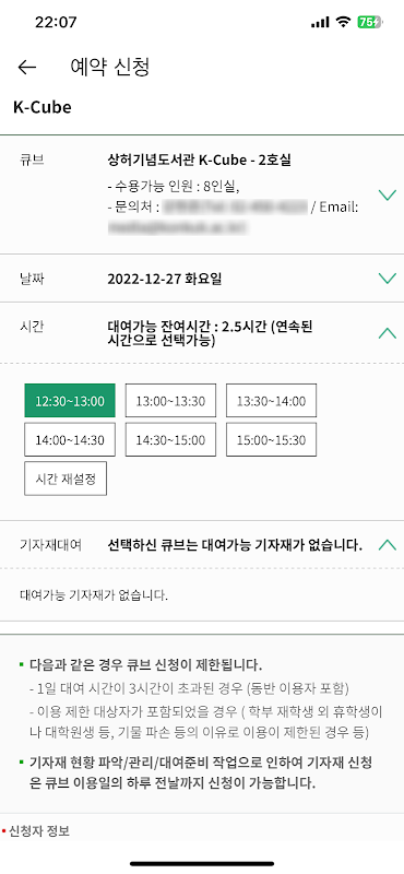 You can easily reserve Konkuk University K-Cube/Hub facilities.
