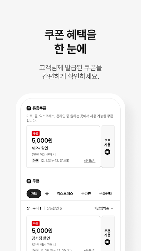 My Home Plus è un'app per abbonati che ti permette di fare acquisti più comodamente nei negozi Home Plus in tutto il paese e offre vantaggi intelligenti e personalizzati, come diverse informazioni sugli sconti, volantini settimanali, coupon, punti e accumulo/utilizzo di Home Plus Money.
