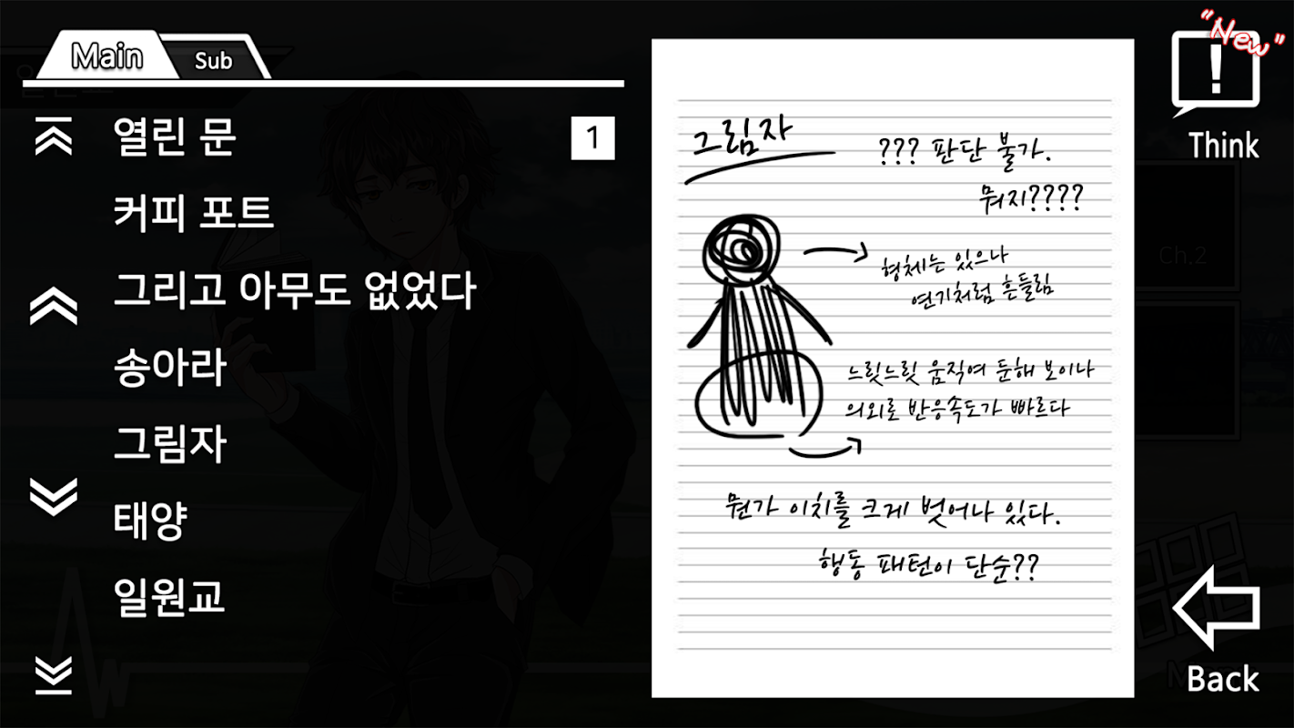 Progredire la storia e gli indizi ottenuti dalla combinazione di indizi e l'ottenimento di un romanzo gioco visivo per passare alla prossima storia.