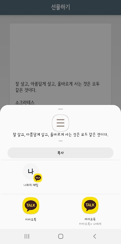Se vuoi condividere una buona parola con qualcuno a cui tieni È possibile copiare testi selezionati in testo / app KakaoTalk / linea e copiare il testo.