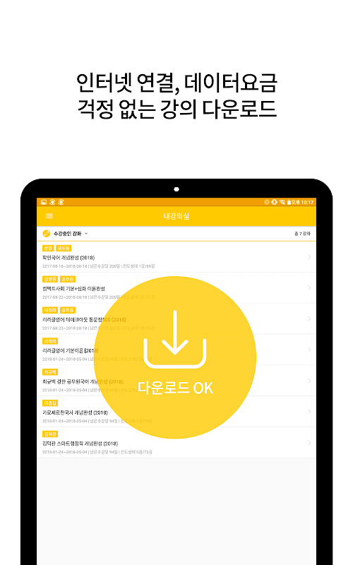 미리 다운로드 보관함에 받아두신 강의는 Wi-fi나 데이터가 없어도 수강 하실 수 있습니다. (단, 로그인 필요)