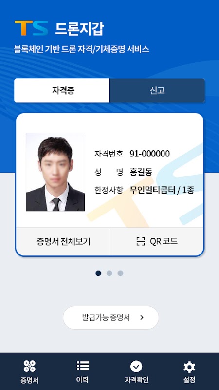 Utilizzando la tecnologia blockchain e DID, il certificato di qualificazione pilota di droni certificato, il certificato di rapporto aereo drone, il certificato di rapporto aziendale utente drone e i certificati basati su DID sono archiviati nell'app portafoglio elettronico.App che fornisce il servizio di autenticazione utilizzando