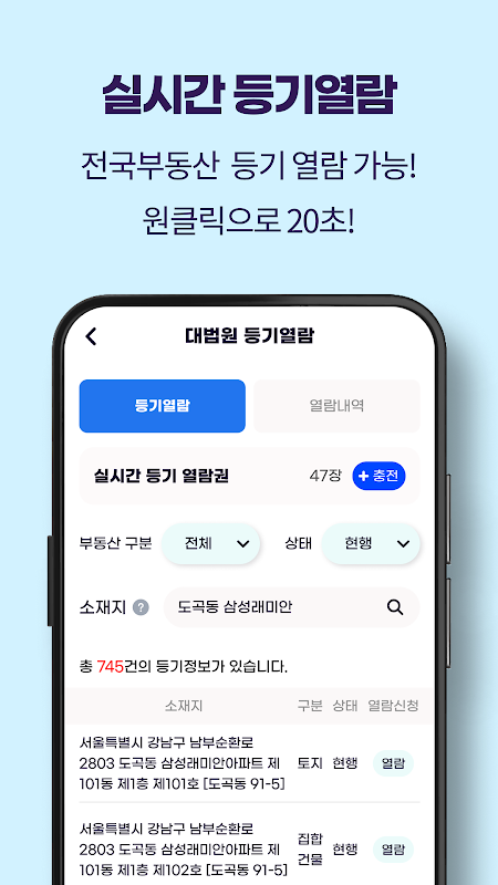 • Visualizza il registro della Corte Suprema, il catasto e il registro degli edifici senza visitare altri siti.