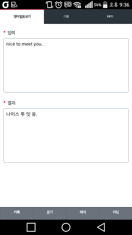 Che produce l'input Hangul pronuncia inglese come apps. Traduzione / ascoltare / registrare / offrono una varietà di funzioni di trasferimento KakaoTalk.