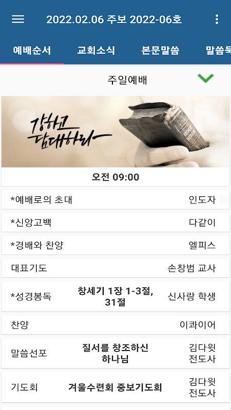 Si tratta di un'applicazione che permette ai membri del liceo della Chiesa di Bangju di visualizzare il bollettino settimanale sul proprio smartphone invece del bollettino cartaceo.