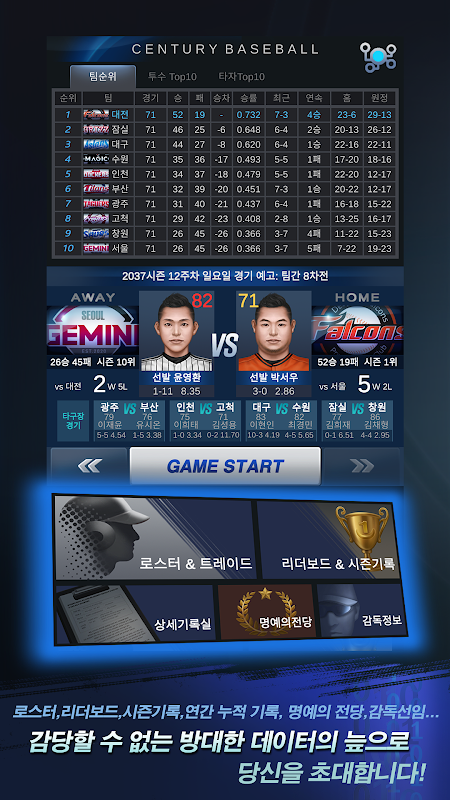 1. Il campionato virtuale è progettato sulla base dell'attuale sistema di baseball professionistico coreano.