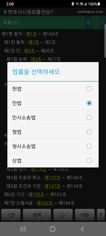 * 헌법, 민법, 민사소송법, 형법, 형사소송법, 상법을 한 앱에 수록한 package 앱