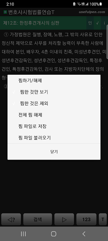 - 찜한 조문 연속 듣기: 내가 찜해 놓은 조문들을 연속해서 들음