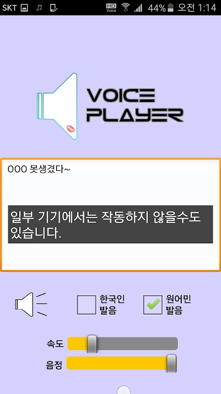 소리의 음정(키)이나, 속도를 조절할 수 있으며, 한국인 발음 뿐만 아니라 원어민 발음으로도 재생할 수 있습니다.