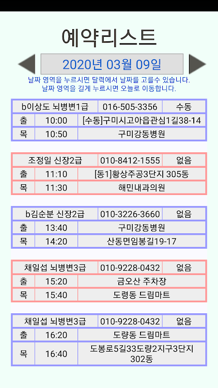 È un elenco di prenotazione di chiamate vulnerabili di trasporto Gyeongsangbuk-do, app per scrivere il diario delle operazioni del veicolo.