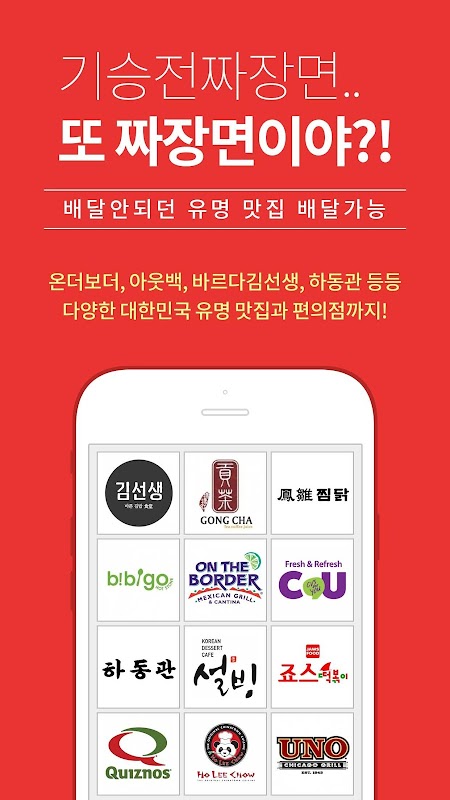 봉추찜닭, 포몬스, 제일제면소, 공차, 비비고 같이 배달이 불가능한 상점의 음식을 줄을 서지 않고 집이나 야외에서 편안히 드실 수 있습니다.