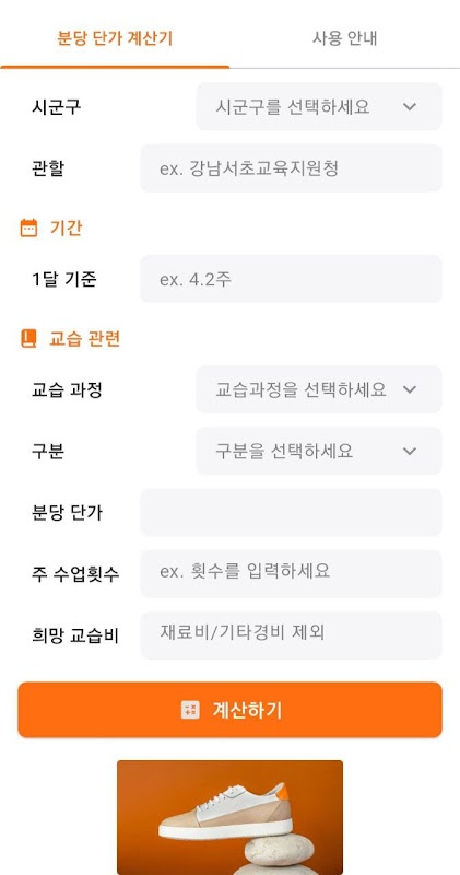 학원 운영에 필수 적인 앱 분당단가 계산기 입니다.