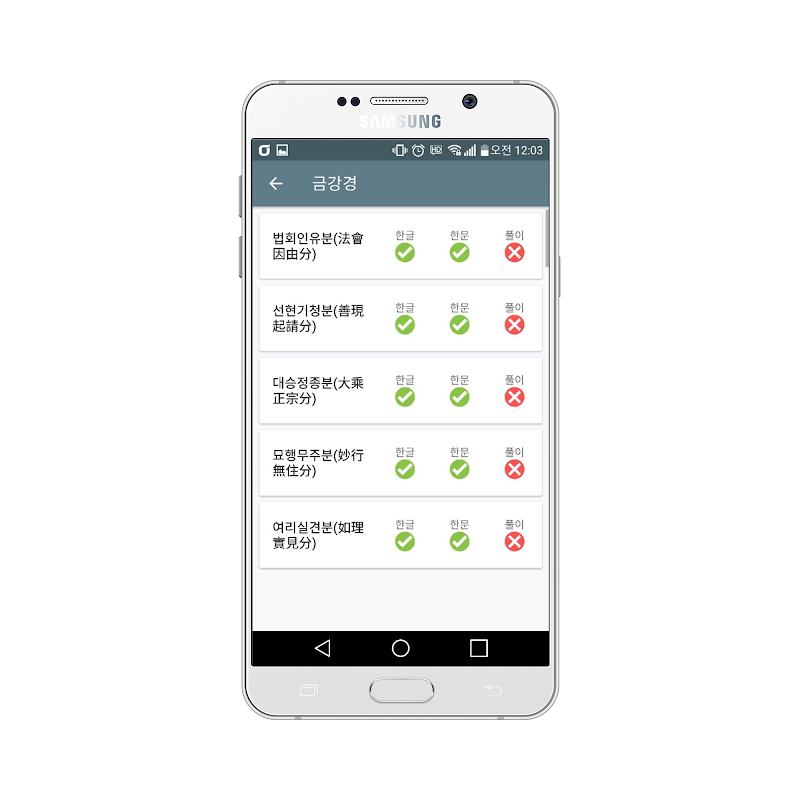 불교 경전을 모아서 보여주는 앱으로 앱에 포함되어 있는 경전의 종류는 아래와 같습니다.