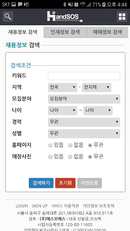 - 지역별, 분야별, 경력별 본인의 조건에 맞는 채용정보 조회 가능