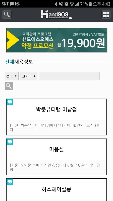 최신 뷰티샵 구인구직 정보를 한번에 확인해 보세요.뷰티샵 취업은 핸드SOS구인구직 서비스에서 시작해 보세요.