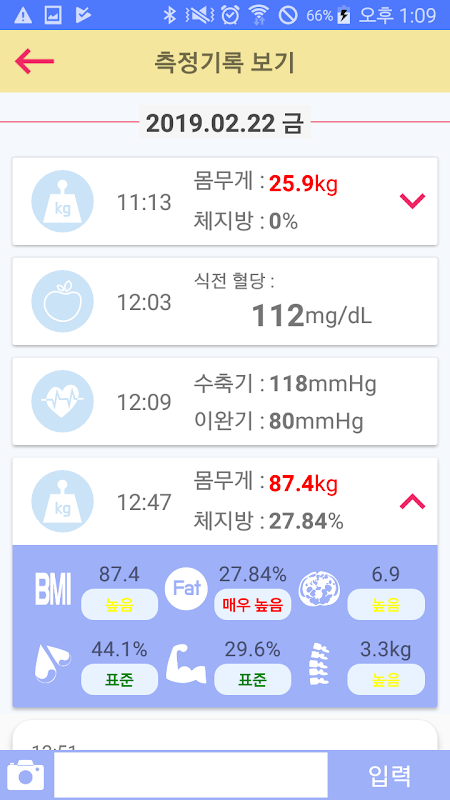그 밖에 신체데이터 각각은 그래프를 통해 한 눈에 알 수 있고,
