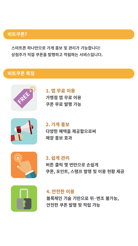 Informazioni su 비트쿠폰(가맹점용) - 블록체인 기반의 온라인 쿠폰, 포인트, 스탬프 적립 및 이용서비스
