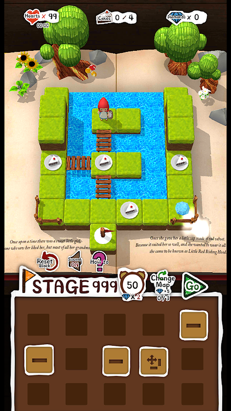 무서운 늑대와 여러 가지 장애물의 방해를 피해 빨간 모자를 할머니께 무사히 데려다주세요.