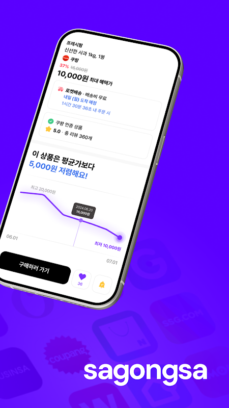 Sagongsa: ricerca acquisti AI, notifica del prezzo più basso, confronto dei prezzi